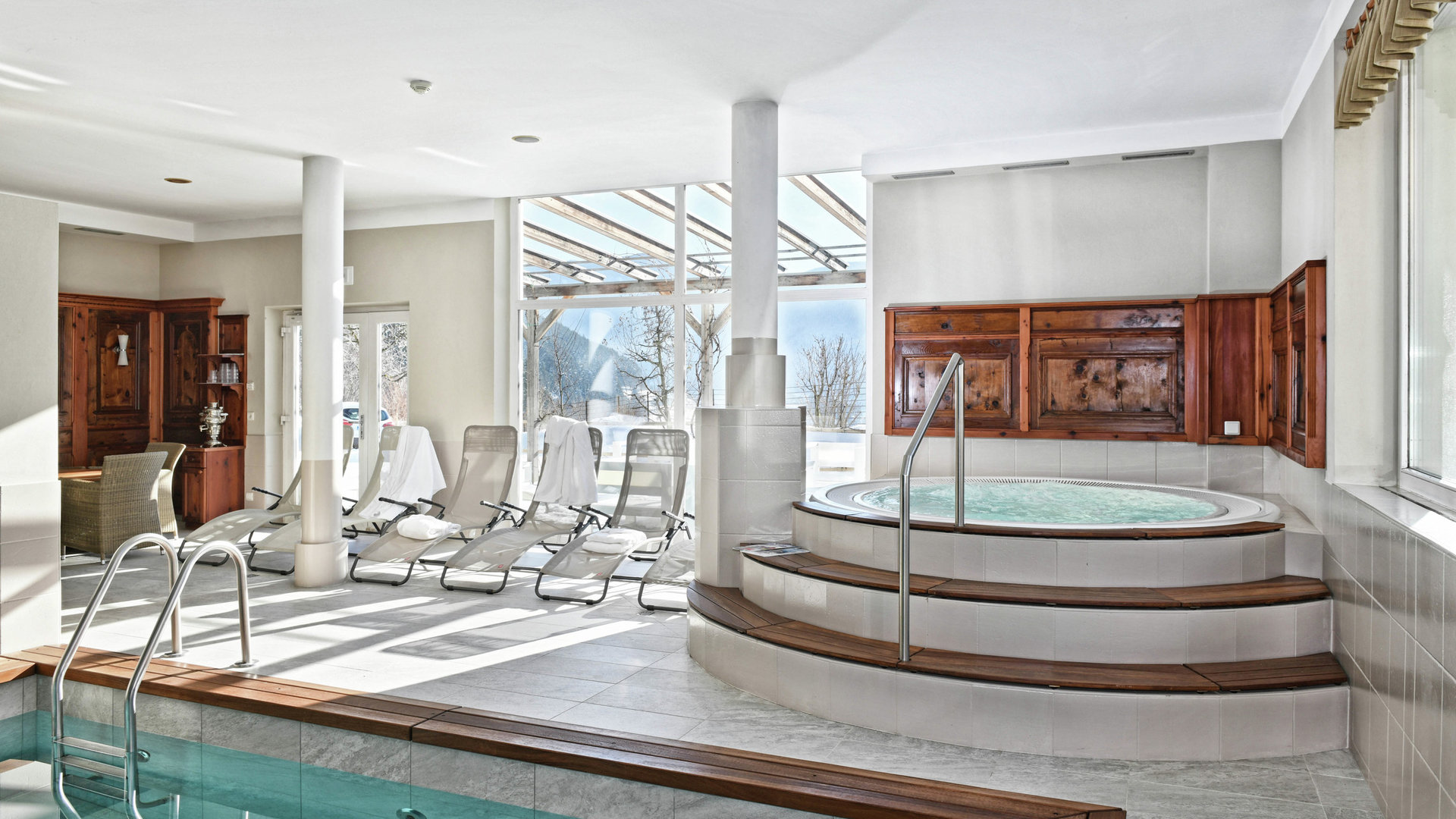 After a day of skiing, relax in the wellness area with indoor pool, whirlpool, and saunas—recharge your batteries for young and old alike. In the dining room, enjoy authentic South Tyrolean cuisine, from pressed dumplings to apple strudel. Start the day with a “vitality breakfast”: regional products, homemade cakes, and freshly squeezed juices.