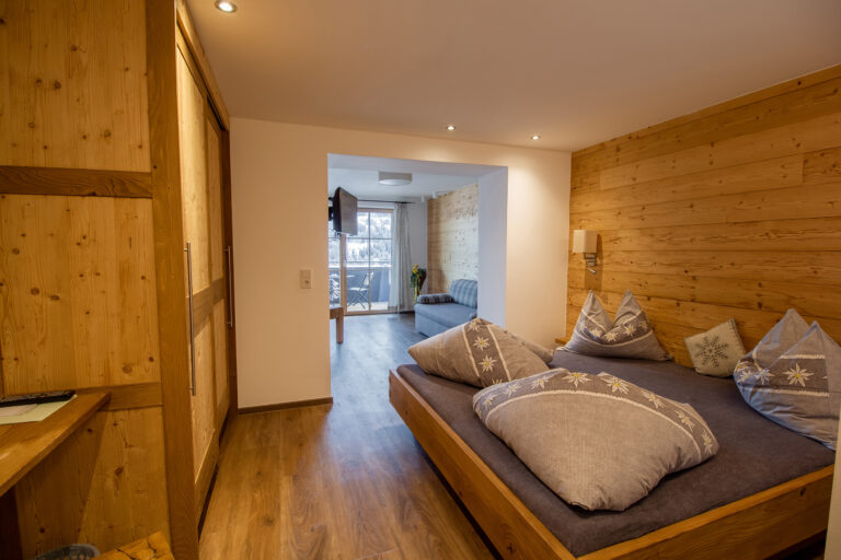The selection ranges from double rooms with extra beds to apartments (e.g., 2–6 people) with kitchens—perfect if the kids are still hungry in the evening or everyone needs their own space. Balconies and lots of wood create cozy retreats after a day of skiing. Transparent size information (up to ~65 m²) helps with planning.