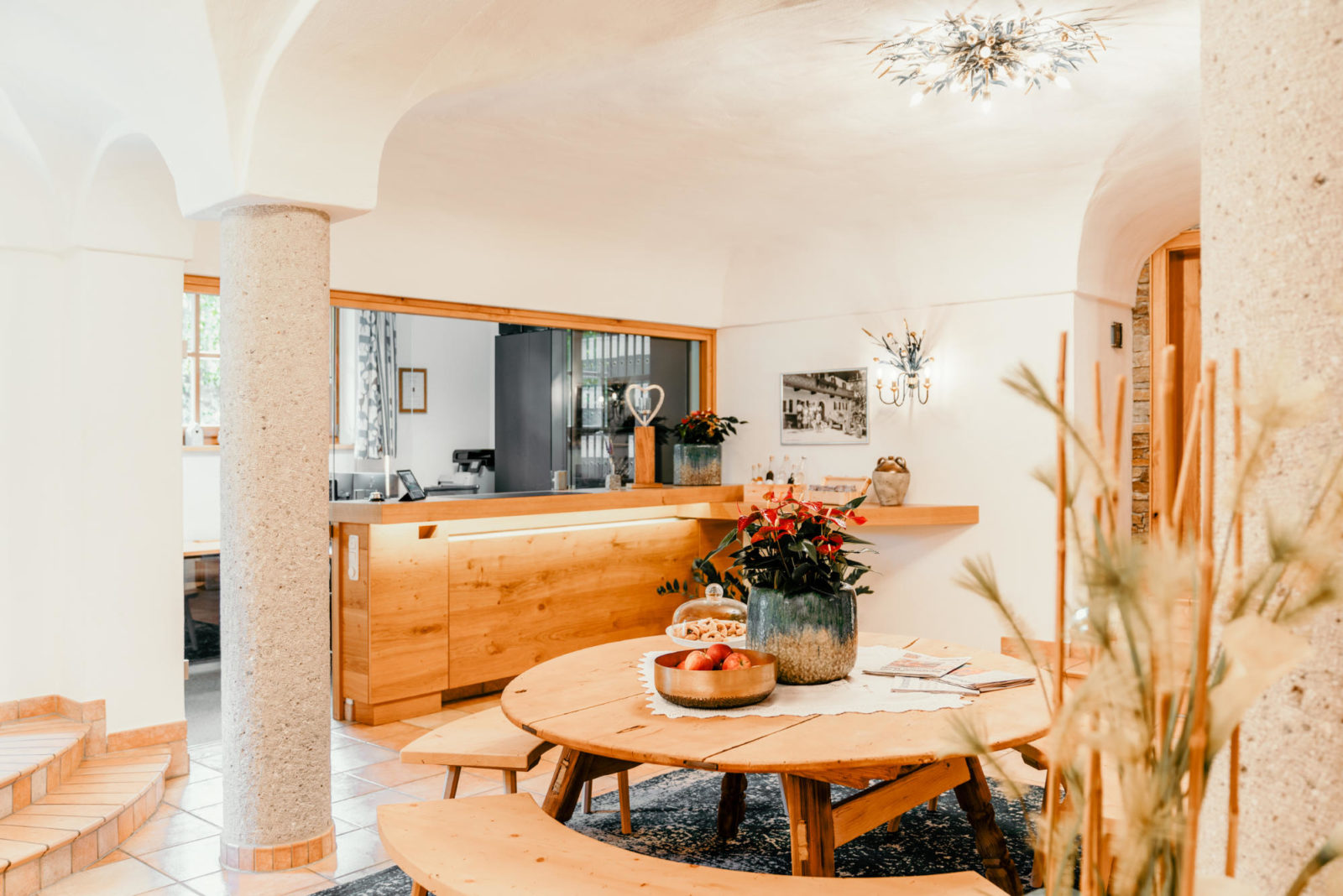 Dopo una giornata sugli sci, potrete riscaldarvi nella piccola ma raffinata spa con sauna biologica/in legno di cembro: accappatoi e borsa spa sono già pronti. Le camere e gli appartamenti sono attrezzati per le famiglie (tra l’altro bagno, cassaforte, WLAN; molti con balcone/terrazza), il che è pratico quando i bambini vanno a dormire presto. Al mattino, la “Stoa-Breakfast” vi darà la carica con prodotti fatti in casa dallo chef: l’inizio perfetto per grandi e piccoli amanti della neve.