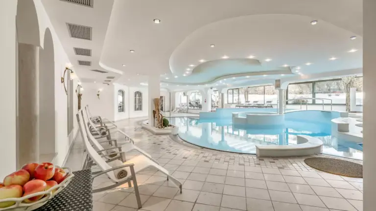 Cosa c’è di più bello che immergersi nell’acqua calda dopo una fredda giornata sulla neve? La piscina interna riscaldata dell’hotel con idromassaggio offre divertimento ai bambini e relax ai genitori. Le ampie vetrate offrono una vista sul paesaggio invernale innevato e rendono il bagno un’esperienza davvero unica.